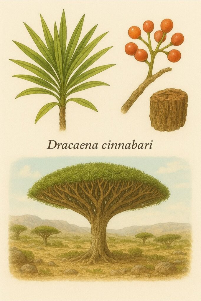 Usos Tradicionales: La “sangre de dragón” (la savia) se ha utilizado tradicionalmente en Socotra como tintura para lanas, como pegamento, y como remedio popular para la fiebre y úlceras. Este valor histórico ha contribuido a la necesidad de proteger la especie de la explotación excesiva.