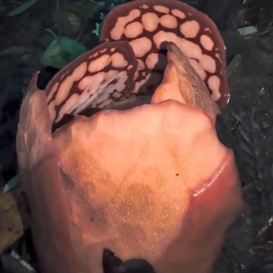 El momento ocurrió durante una caminata habitual. Entre la hojarasca, un destello rojo llamó su atención. Al acercarse, reconoció inmediatamente las gruesas piezas florales abiertas como un disco gigante. Era una Rafflesia hasseltii en su punto perfecto de madurez.
