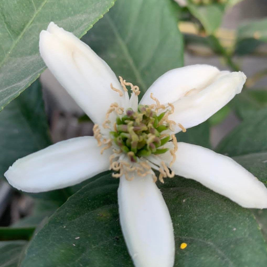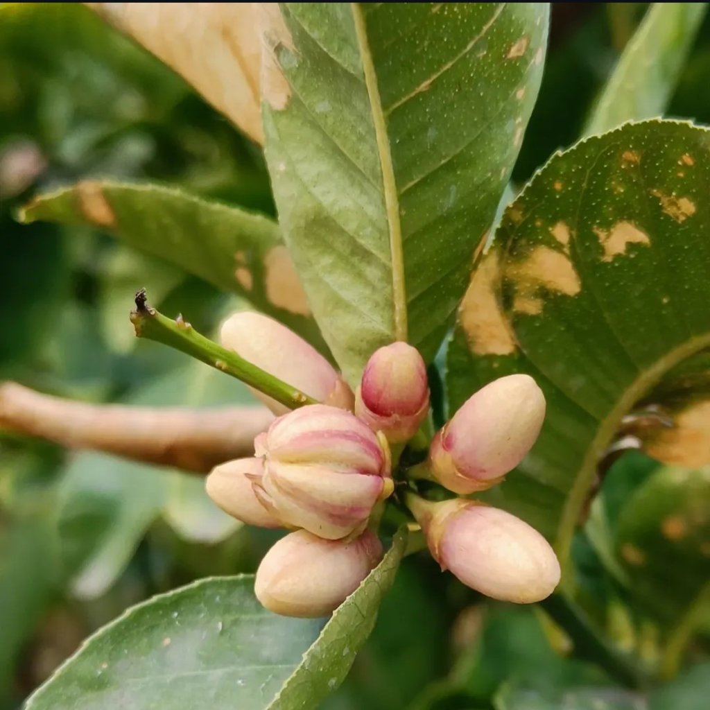 Follaje: Sus hojas son grandes, de forma oblongo-elíptica y con márgenes sutilmente dentados. Presentan un color verde pálido a vibrante, con una textura coriácea y un peciolo corto que carece de las “alas” características de otros cítricos (como el naranjo amargo). Al trasluz, se pueden observar los puntos translúcidos que corresponden a las glándulas de aceites esenciales.