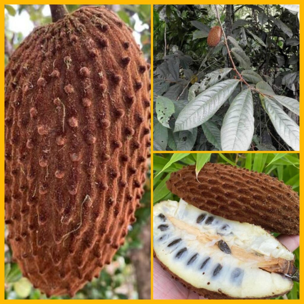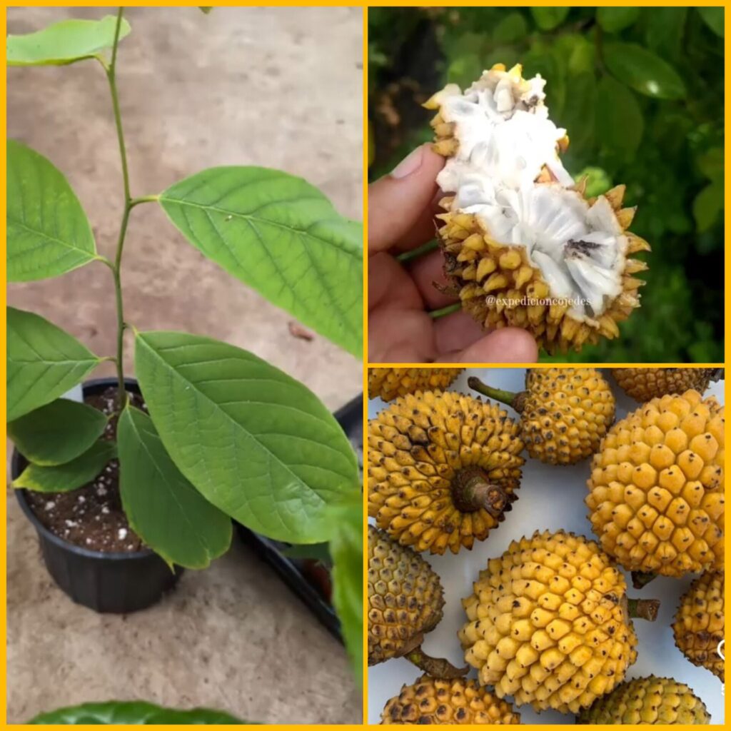 Aspecto exterior: La piel es verde y presenta proyecciones externas a manera de pelos o espinas flexibles , lo que le da un aspecto exótico, a veces comparado con la apariencia de un rambután. El fruto se vuelve amarillo al madurar.