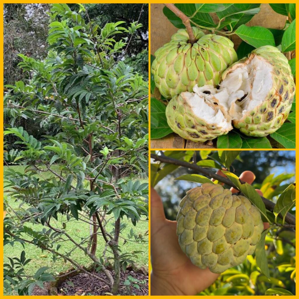 Árbol: El árbol de la atemoya es vigoroso, de rápido crecimiento y, a menudo, hereda cierta resistencia al frío de su pariente, la chirimoya, permitiendo su cultivo en climas subtropicales.