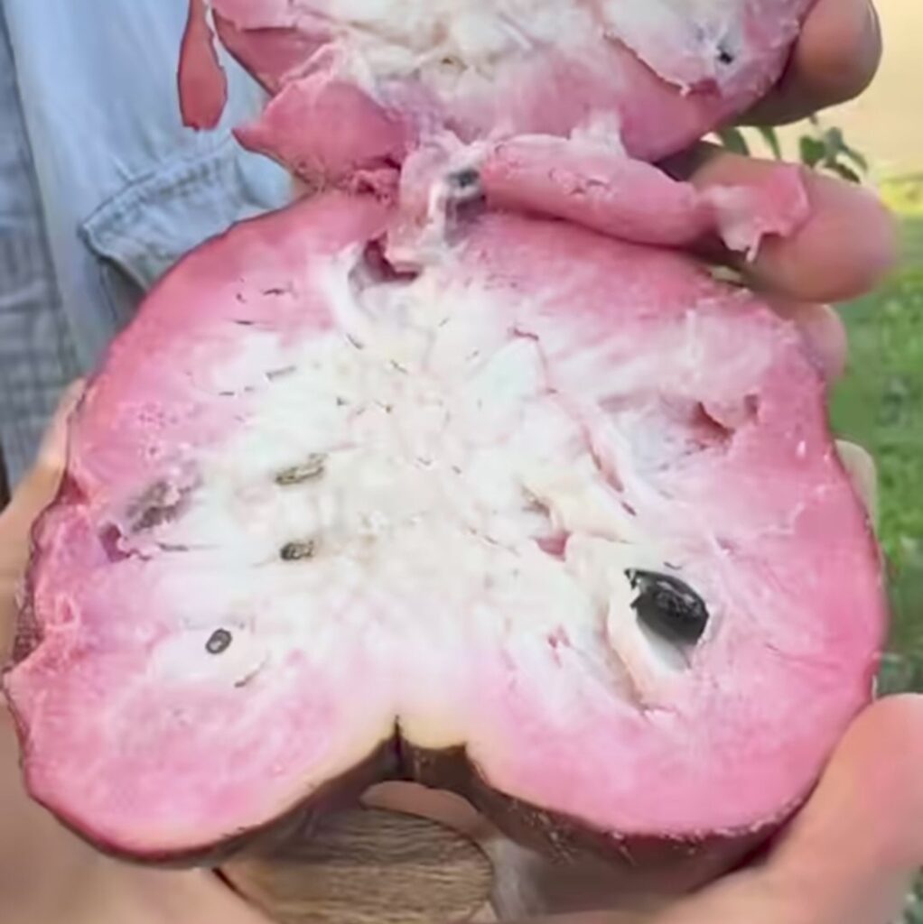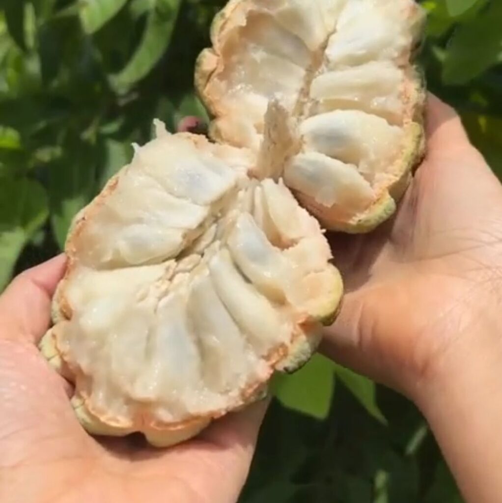 Textura: La pulpa es de color blanco a blanco-amarillento , jugosa y con una textura cremosa y ligeramente granulosa (similar a un flan o natilla).