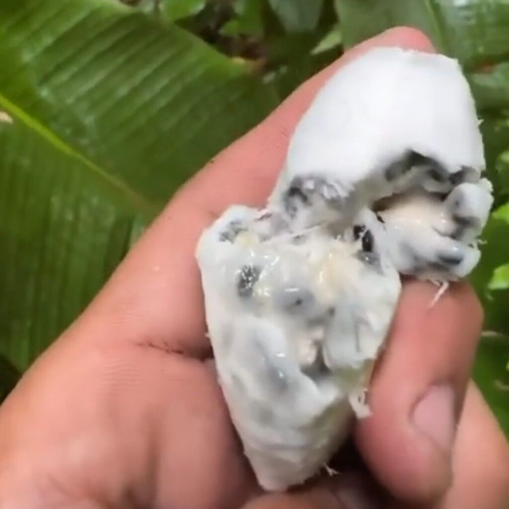 El Fruto que se Pela Solo: Una de sus curiosidades más prácticas es que el fruto, una vez maduro, no espera a ser abierto. La piel (cáscara) se rasga longitudinalmente y se pela sola, exponiendo la pulpa interior cremosa y las semillas. Esto es un mecanismo natural para atraer a los dispersores de semillas en su hábitat.
