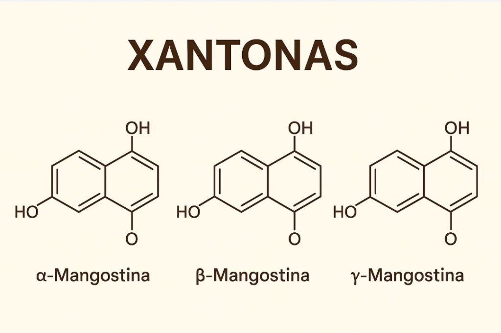 Entre las xantonas más potentes se encuentran la α-mangostina, β-mangostina y γ-mangostina, las cuales protegen las membranas celulares y el ADN del daño oxidativo.