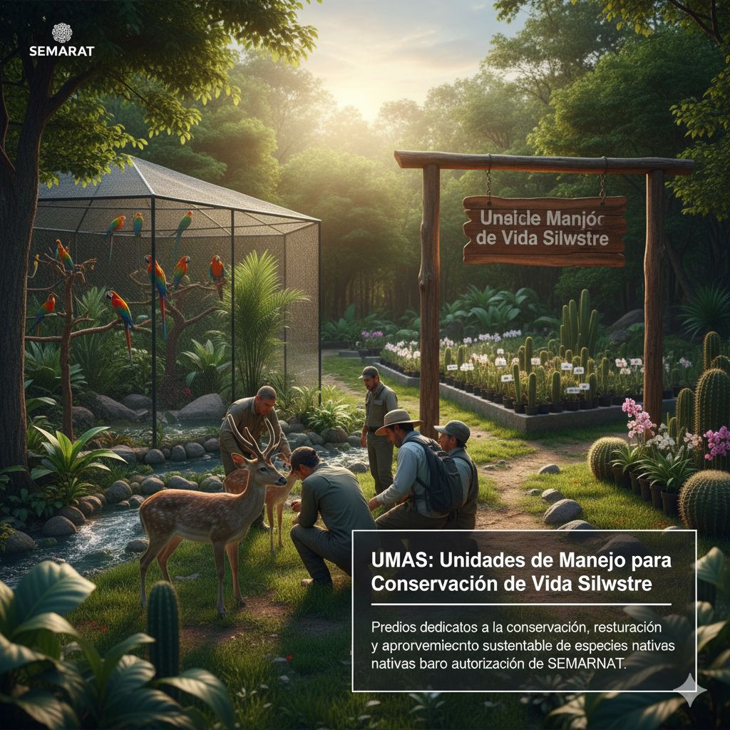 Una UMA es un predio, ya sea de propiedad privada, ejidal, o comunal, que opera bajo un plan de manejo autorizado por la SEMARNAT. Su objetivo principal es la conservación, la restauración de hábitats y el aprovechamiento sustentable de las especies de flora y fauna que viven en ella, o que son reproducidas ahí.